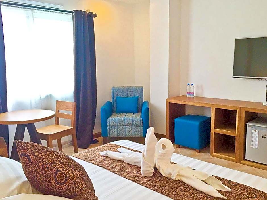 Rooms are fitted with a ceiling fan and offers a personal safe and a mini-bar.